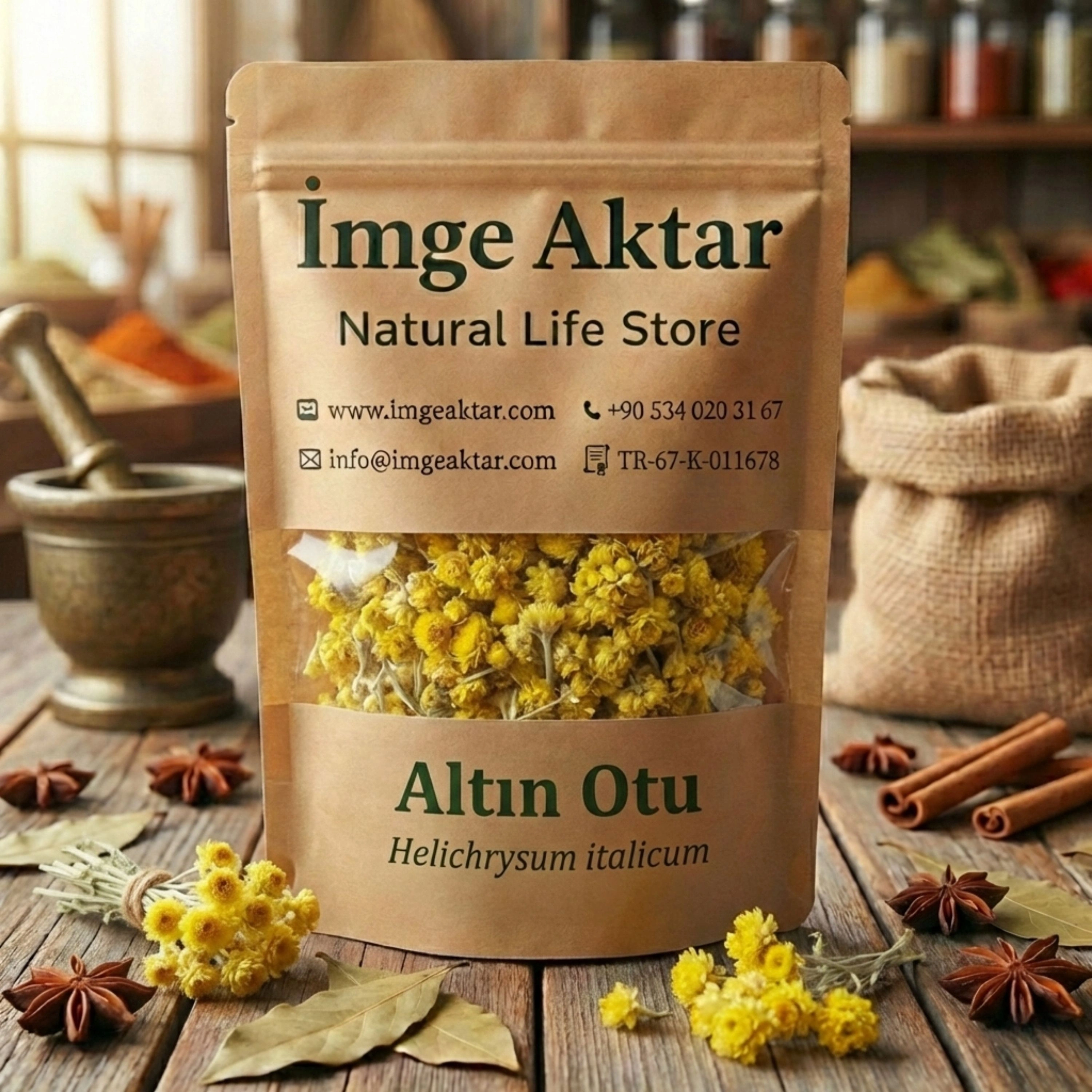 İmge Aktar kalitesiyle sunulan Altın Otu, doğadan toplandıktan sonra uygun koşullarda kurutularak paketlenmiştir. Botanik literatüründe "Helichrysum" olarak geçen bu bitki, koparıldıktan sonra bile o canlı sarı rengini ve formunu uzun süre koruduğu için halk arasında "Ölmez Çiçek" olarak da adlandırılır. İçerdiği uçucu yağlar, flavonoidler ve doğal bileşenler sayesinde kendine has, hoş bir kokuya sahiptir. Anadolu geleneğinde sıvı atımını desteklemek ve sindirim sistemini rahatlatmak amacıyla çay olarak tüketimi yaygındır.
