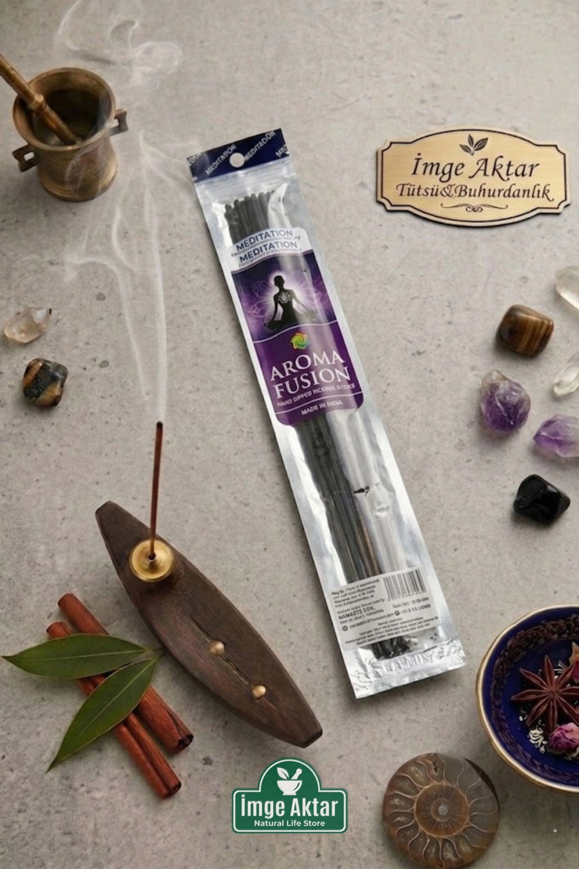 İmge Aktar, günün karmaşasından uzaklaşıp kendi iç dünyanıza dönmek istediğiniz anlarda size eşlik edecek en güzel kokulardan birini, Darshan kalitesiyle sizlerle buluşturuyor. Aroma Fusion serisine ait Meditation el yapımı çubuk tütsü, içerisindeki mistik ve dinlendirici özel harman sayesinde ortamdaki zihinsel yorgunluğu dağıtarak sakin, huzurlu ve odaklanmaya açık bir atmosfer yaratır.
