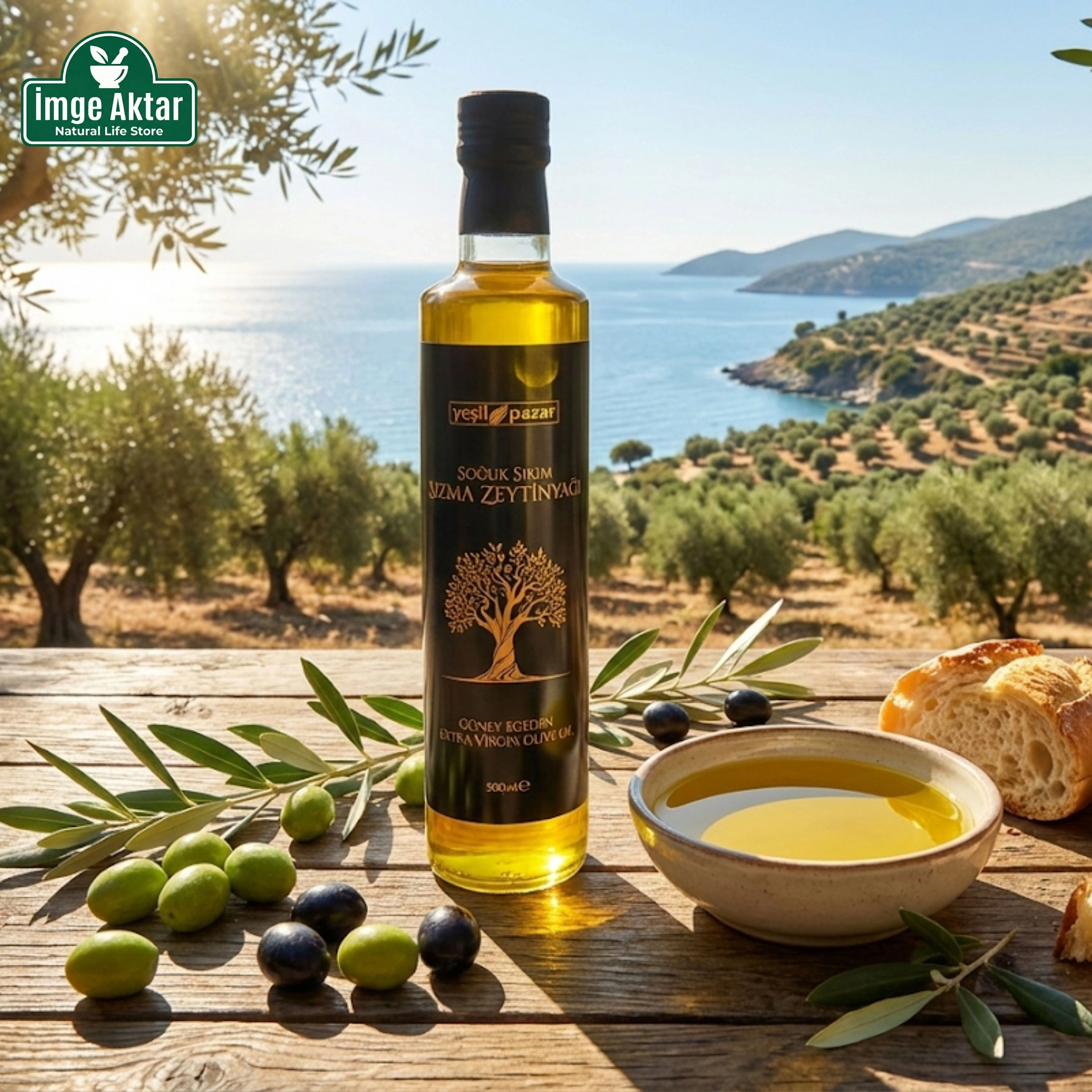 Yeşil Pazar Güney Ege Zeytinyağı, zeytincilik kültürünün kalbi sayılan Güney Ege bölgesinin bereketli ağaçlarından toplanan zeytinlerin, bekletilmeden sıkılmasıyla elde edilen üst segment bir yağdır. "Extra Virgin" yani Naturel Sızma sınıfında yer alır; bu da zeytinin en saf, en doğal ve kusursuz halini temsil eder. Kendine has meyvemsi kokusu, boğazı hafifçe yakan karakteristik yapısı (polifenol zenginliğinin göstergesi) ve altın sarısı rengiyle bilinir. Rafine edilmemiş, kimyasal işlem görmemiş ve yüksek ısıya maruz kalmamış yapısıyla, zeytinin tüm besin değerlerini ve aromasını korur. Özellikle soğuk tüketim için idealdir; kahvaltı sofralarında, salatalarda, mezelerde veya pişmiş yemeklerin üzerine son dokunuş olarak gezdirildiğinde lezzeti zirveye taşır.