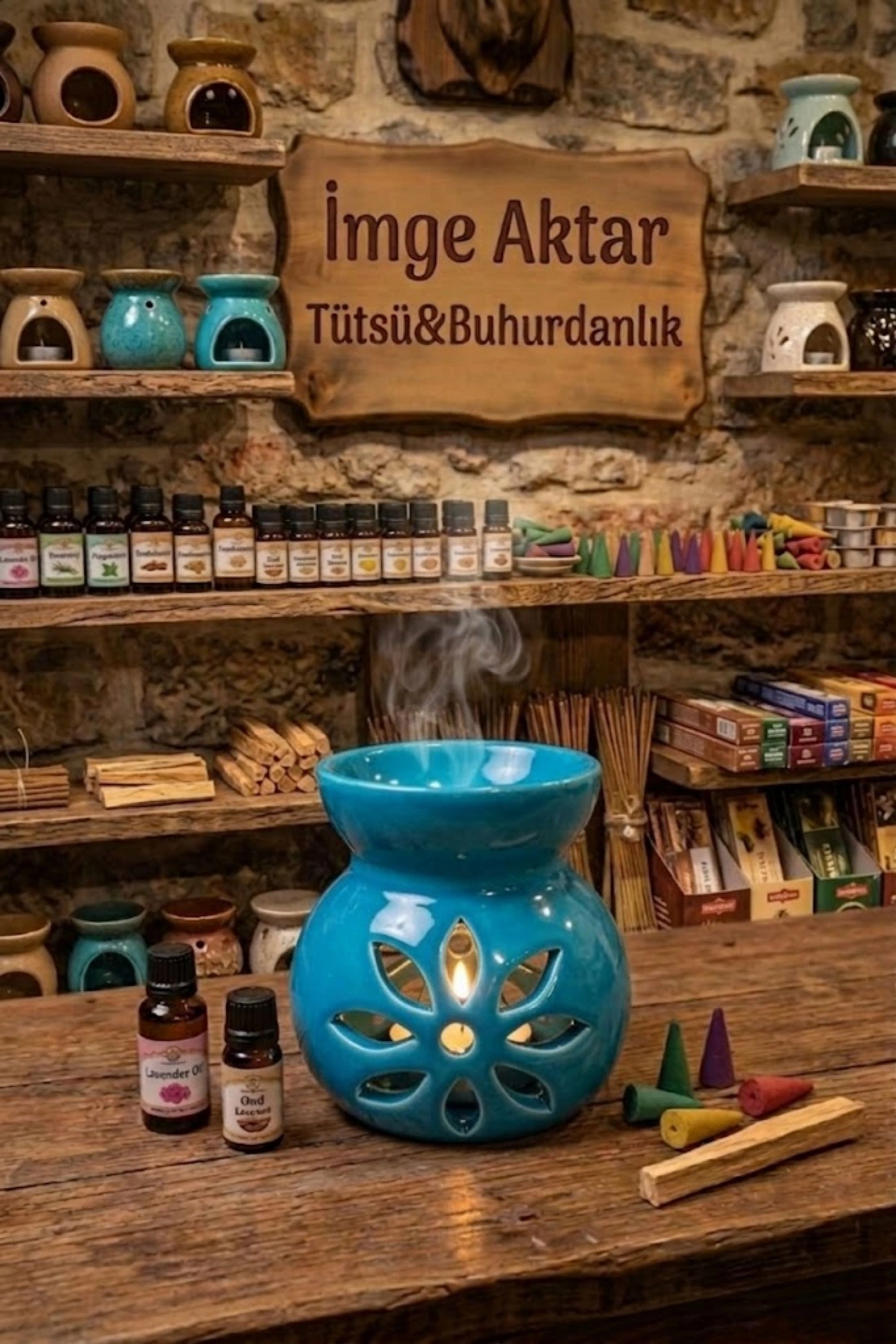 Bu zarif parça, sadece bir buhurdanlık değil, aynı zamanda ortamın stresini anında alan dekoratif bir mumluk (tealight holder) olarak da işlev görür. Üst haznesine ekleyeceğiniz ılık su ve birkaç damla saf uçucu yağ ile odanızın havasını tazeleyebilir, lotus motiflerinin arasından süzülen loş mum ışığı eşliğinde zihninizi dinlendirebilirsiniz. Sakinleştirici mavi tonuyla bulunduğu her köşeye okyanus ferahlığı ve dinginlik katar.