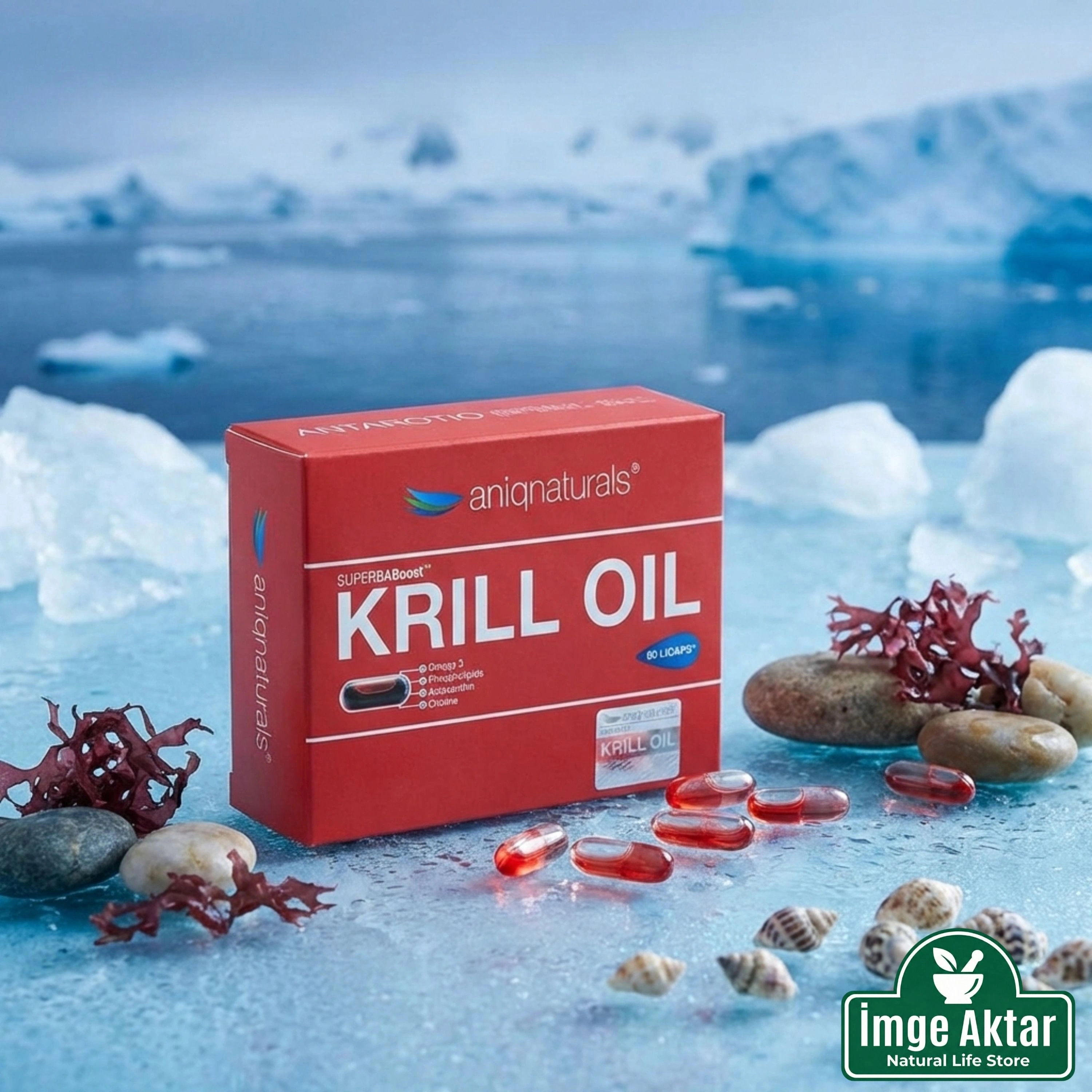 Aniqnaturals Krill Oil, Antarktika'nın temiz ve soğuk sularında yaşayan Euphausia superba türü krillerden elde edilen yeni nesil bir Omega-3 kaynağıdır. Üründe ham madde olarak, sürdürülebilir balıkçılık sertifikasına sahip ve saflığıyla bilinen "Superba Boost™" kullanılmıştır. Krill yağını klasik balık yağlarından ayıran en temel özellik, içerdiği Omega-3 yağ asitlerinin (EPA ve DHA) "Fosfolipit" yapısında olmasıdır. Hücre zarı yapısına benzeyen bu form, vücut tarafından trigliserit formundaki balık yağlarına göre çok daha verimli bir şekilde tanınır ve emilir (yüksek biyoyararlanım). Ayrıca krill yağına doğal kırmızı rengini veren güçlü bir karotenoid olan Astaksantin ve Kolin içerir. Licaps kapsül teknolojisi sayesinde ürün hava ile temas etmez, tazeliğini korur ve balık yağı kullanımında sıkça şikayet edilen balık kokusu veya tadı (reflü etkisi) sorununu minimize eder.